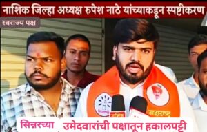 याबाबत सविस्तर वृत्त असे की सिन्नर येथील सामाजिक कार्यकर्ते शरद शिंदे यांच्यावर स्वराज्य पक्षाच्या तालुका अध्यक्ष म्हणून नियुक्त करण्यात आली होती व विधानसभा निवडणुकीत सिन्नर तालुका मतदार संघाचे अधिकृत उमेदवार म्हणून घोषित केले व त्या अनुषंगाने सिन्नर विधानसभा मतदारसंघ निवडणुकांतील विद्यमान आमदार माणिकराव कोकाटे व प्रतिस्पर्धी उमेदवार उदय सांगळे यांच्या विरोधात प्रचाराचे रणशिंग फुंकले.. प्रचार शिगेला पोहोचला असताना मध्येच माशी शिंकली..