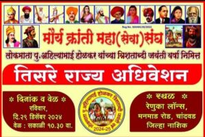 मोरे मौर्य क्रांती महासंघ च्या वतीने पुण्यश्लोक अहिल्यादेवी होळकर यांच्या त्रिशताब्दी वर्षानिमित्त अखिल भारतीय धनगर धर्म परिषदेचे आयोजन….