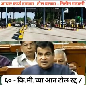 त्यामुळे तुम्हाला  पुढे प्रवास करताना टोल भरावा लागणार नाही याची दक्षता घ्या.. कारण स्थानिक गावकरी व शेतकरी यांच्या कडून टोल आकारला जात असेल तर ते बेकायदेशीर आहे, त्यामुळे सर्वसामान्य समाजाची दिशाभूल केली जात आहे व विनाकारण टोल वसुल केली जात आहे ती त्वरित थांबवावी अशी अपेक्षा श्री.गडकरी साहेब यांनी व्यक्त केली आहे. या निर्णयामुळे प्रवासी वाहतूक करणाऱ्यांना व प्रवास करताना टोल भरावा लागणार नाही या निर्णयामुळे सर्वत्र सर्वसामान्य नागरिकांमध्ये समाधान व्यक्त होत आहे……….