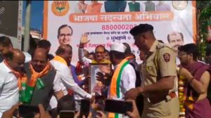 यानंतर कोठी संस्थान मध्ये त्र्यंबकेश्वर देवस्थान ट्रस्ट तर्फे विश्वस्त कैलास घुले, पुरुषोत्तम कडलग, मनोज थेटे, रुपाली भुतडा यांनी त्यांचा सत्कार करण्यात आला. तेथुन बाहेर पडतांना कोठी संस्थानच्या प्रवेशद्वारातच महाराष्ट्र राज्याचे कृषीमंत्री ना. माणिकराव कोकाटे यांनी कोठी हाॅलमधुन मंदिरात प्रवेश केला. यावेळी दोन्ही कृषिमंत्र्यांनी एकमेकांना आलिंगन दिले. ना. माणिकराव कोकाटे यांनी केंद्रीय कृषीमंत्री ना.शिवराजसिंह चौहान यांना पुष्पहार घालुन स्वागत केले. काही वेळ एकमेकांशी संवाद करुन दोन्ही नेते बाहेर आले. त्र्यंबकेश्वर मंदीरासमोर भाजप सदस्यता अभियानाचा शुभारंभ दोन्ही मंत्री महोदयांच्या हस्ते करण्यात आला. यावेळी जेष्ठ नेते सुरेशतात्या गंगापुत्र यांनी त्यांचा शाल, पुष्पहार देऊन सत्कार केला. यावेळी भाजप जिल्हाध्यक्ष सुनिल बच्छाव, अॅड. श्रीकांत गायधनी, जिल्हा उपाध्यक्ष सुयोग वाडेकर, मा.नगराध्यक्ष पुरुषोत्तम लोहगावकर, शहराध्यक्ष प्रशांत बागडे, सचिन शुक्ल आदींसह कार्यकर्ते मोठ्या संख्येने उपस्थित होते. यावेळी प्रांताधिकारी ओमकार पवार ( आयएएस), तहसीलदार श्वेता संचेती आदी मान्यवर उपस्थित होते.