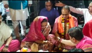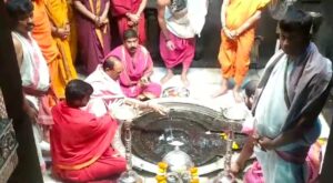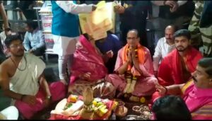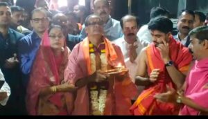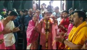 यावेळी त्यांनी सोवळे परिधान करुन गर्भगृहात रुद्राभिषेक पुजा करुन सभामंडपात सहपरीवार पुजा आरती केली. यावेळी त्यांच्या पत्नी व पुत्र कुणाल हे देखील उपस्थित होते…