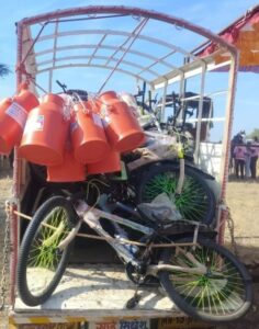 आज रेणुका माता यात्रा उत्सवानिमित्त आयोजित भव्य बैलगाडा शर्यतीत विजयी ठरलेल्या गाडा मालकांना प्रत्येकी एक सायकल याप्रमाणे एकूण १० सायकली बक्षीस म्हणून देण्यात आल्या. यासोबतच शेतकऱ्यांसाठी उपयुक्त असलेल्या विविध साहित्याचेही वाटप करण्यात आले.या उपक्रमांमुळे ग्रामीण भागातील खेळाडू, शेतकरी आणि युवकांमध्ये मोठा उत्साह निर्माण झाला आहे. पारंपरिक खेळ जतन व संवर्धन करण्यासाठी तसेच ग्रामीण क्रीडासंस्कृतीला प्रोत्साहन देण्यासाठी असे उपक्रम अत्यंत महत्त्वाचे असल्याचे मत उपस्थितांनी व्यक्त केले.