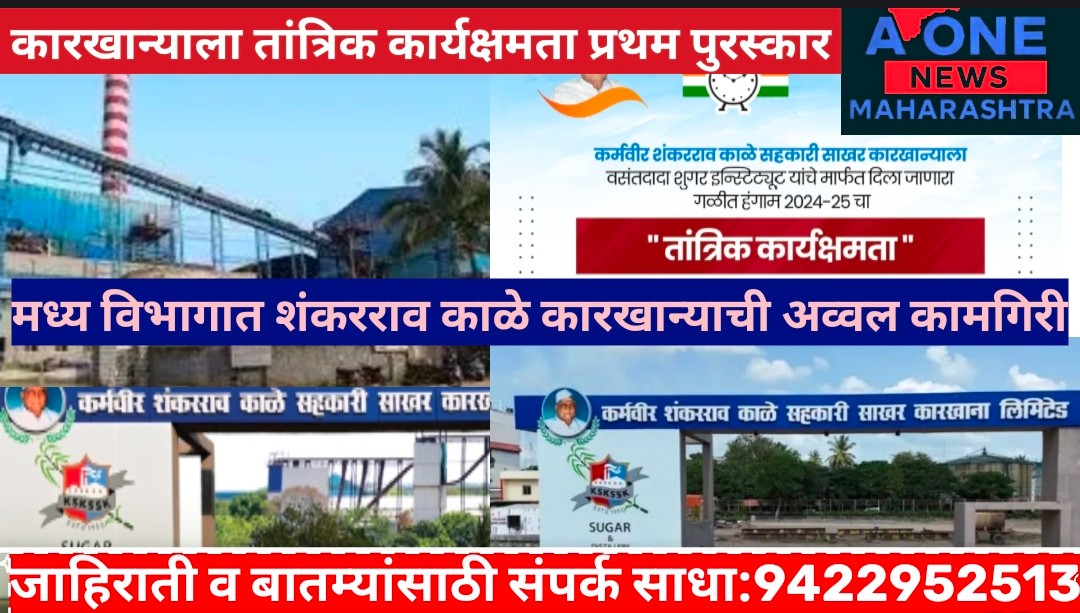 मध्य विभागात शंकरराव काळे कारखान्याची अव्वल कामगिरी....सहकार महर्षी शंकरराव काळे सहकारी साखर कारखान्याला तांत्रिक कार्यक्षमता प्रथम पुरस्कार जाहीर… December 26, 2025 No Comments