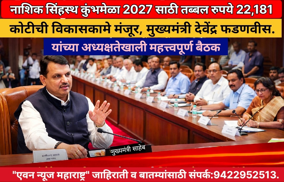 सिंहस्थ कुंभमेळा २०२७ साठी तब्बल ₹२२,१८१ कोटींची विकासकामे मंजूर; मुख्यमंत्री देवेंद्र फडणवीस यांच्या अध्यक्षतेखाली महत्त्वपूर्ण बैठक… March 14, 2026 No Comments