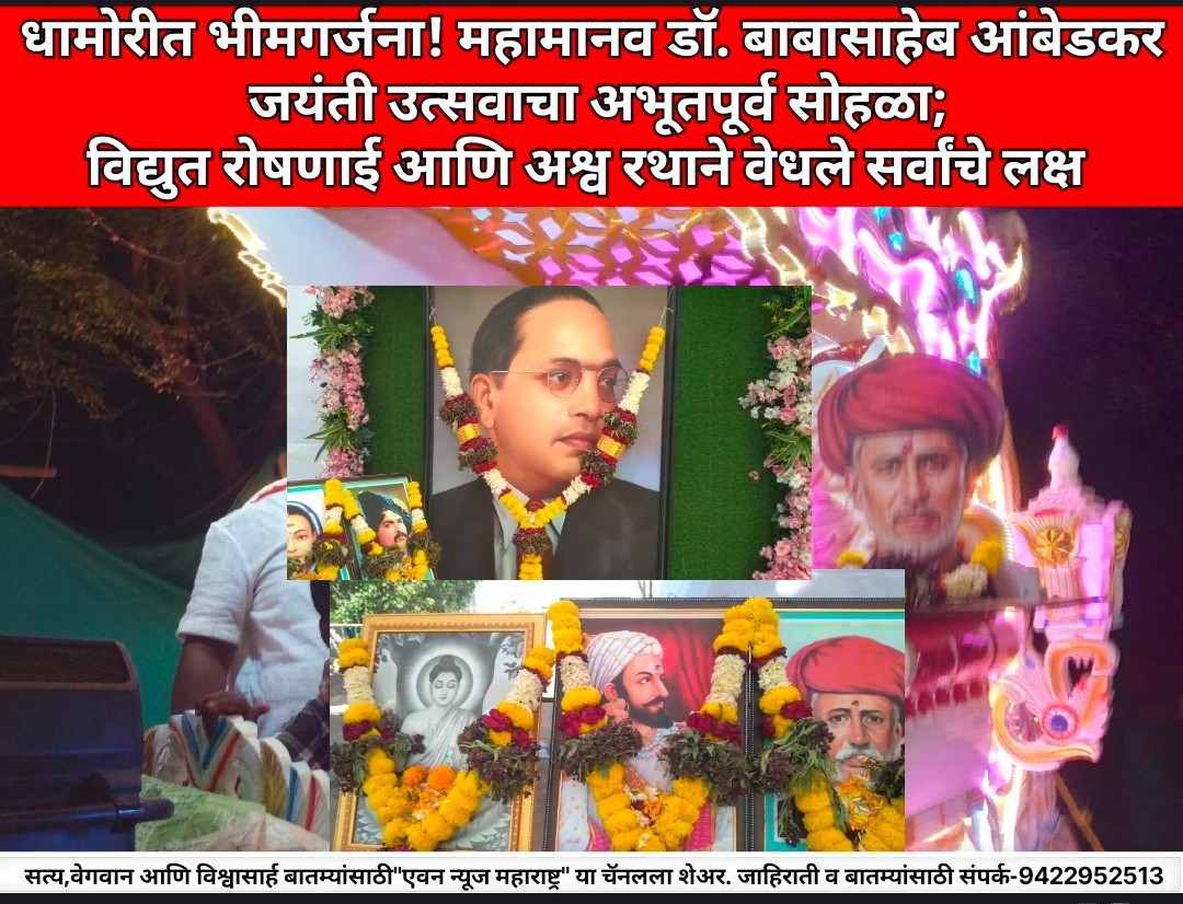 धामोरीत भीमगर्जना! महामानव डॉ. बाबासाहेब आंबेडकर जयंती उत्सवाचा अभूतपूर्व सोहळा; विद्युत रोषणाई आणि अश्व रथाने वेधले सर्वांचे लक्ष April 15, 2026 No Comments